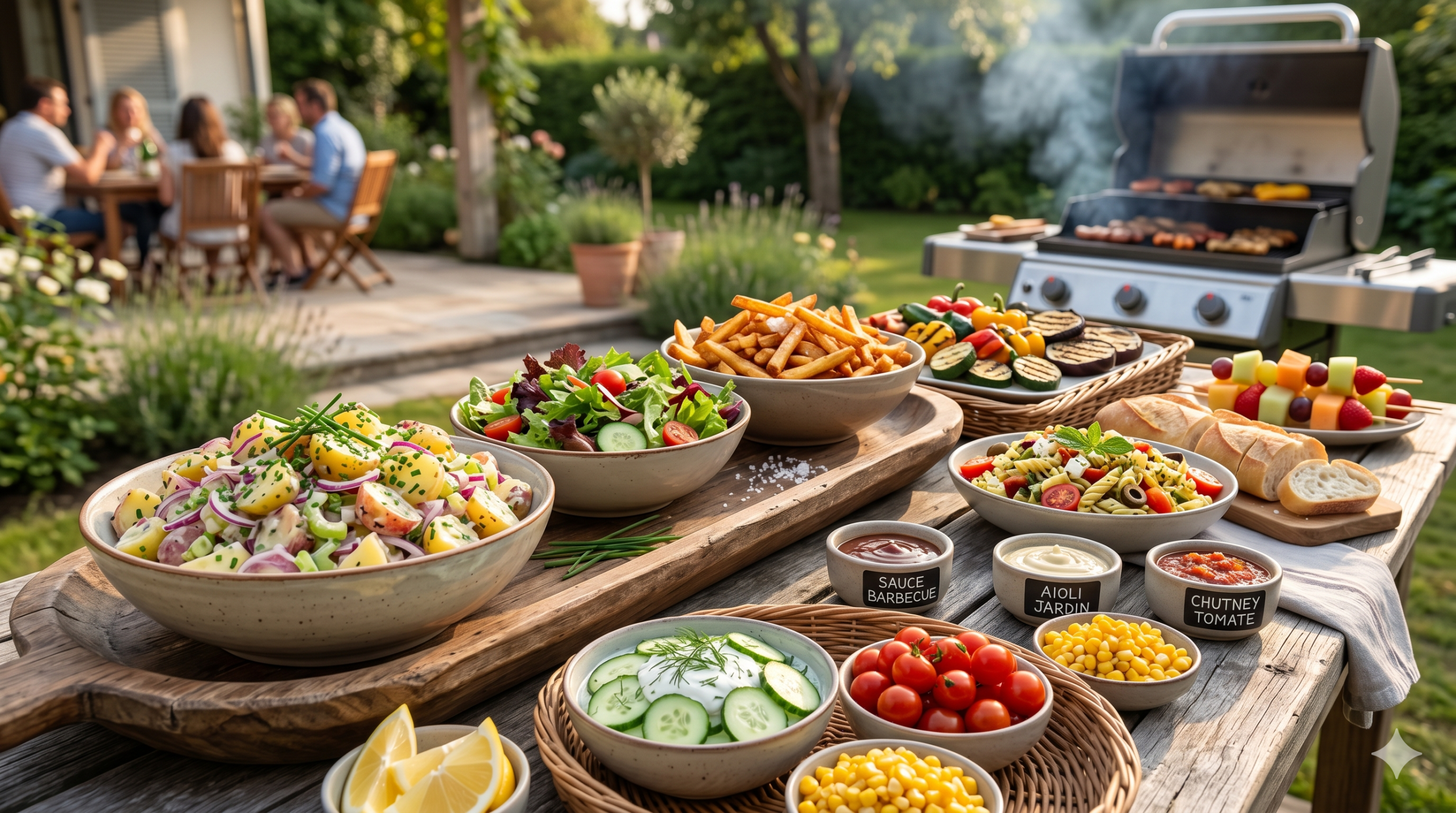 Un repas composé uniquement de grillades manque souvent de fraîcheur et d’équilibre. Les accompagnements barbecue remplissent plusieurs rôles en même temps. Ils allègent les plats riches, ajoutent de la couleur dans les assiettes et proposent des options pour tous les goûts, y compris les végétariens. Une table bien garnie en accompagnements, c’est aussi un repas plus convivial, où chacun se sert selon ses envies. En été, des plats froids ou tièdes placés au centre de la table facilitent le service. Ils évitent surtout de vous retrouver bloqué devant le barbecue pendant que vos invités attendent.